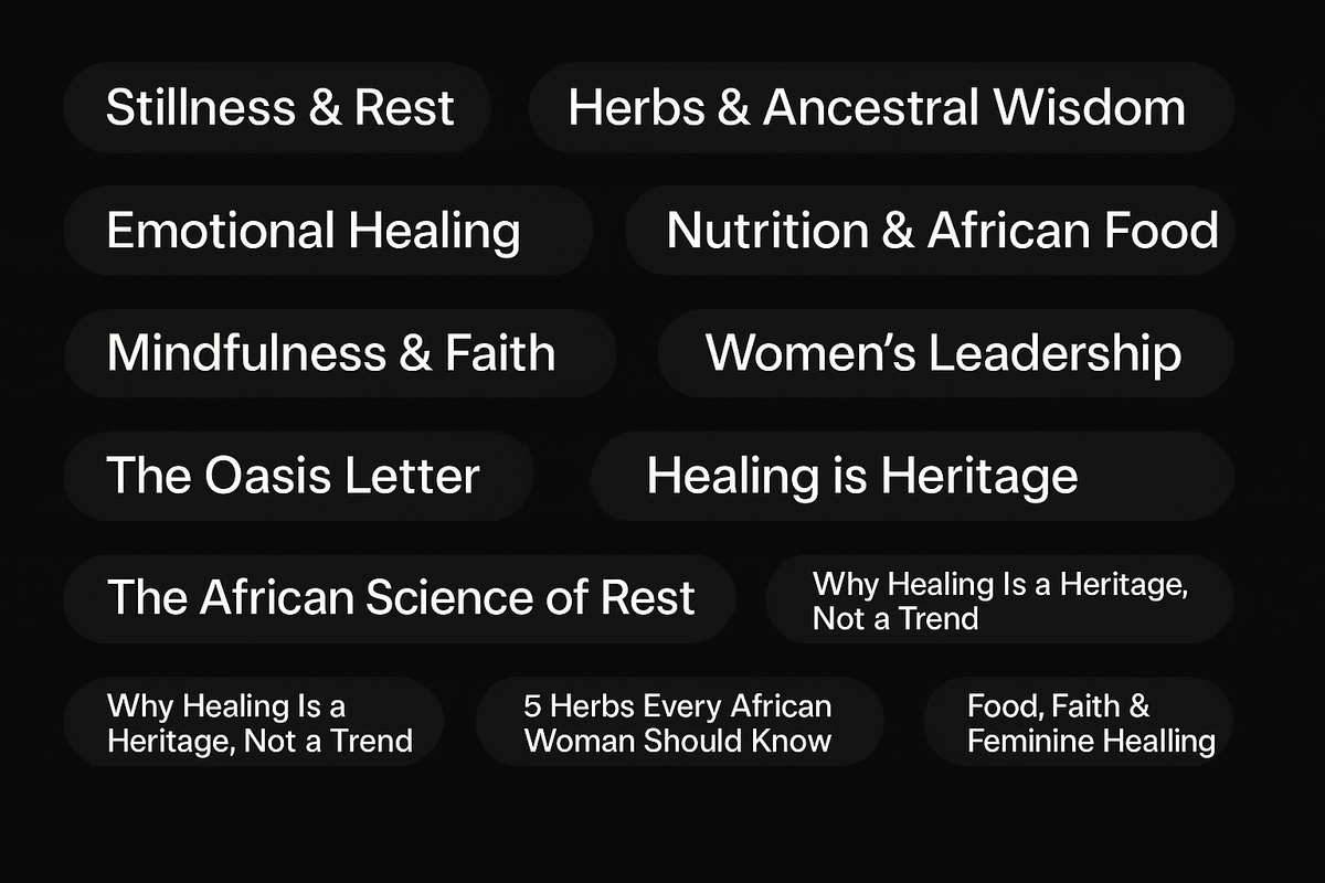 TeeOasis is a wellness sanctuary for African women who are tired, strong, and ready to heal. Here, we talk about stillness, emotional healing, herbal wisdom, and finding your rhythm again. Each story, post, and product is created to help you rest, rise, and remember who you are. 🌱 Start by joining
